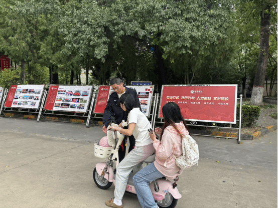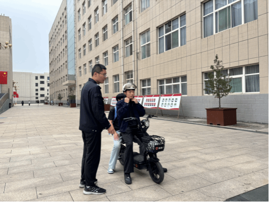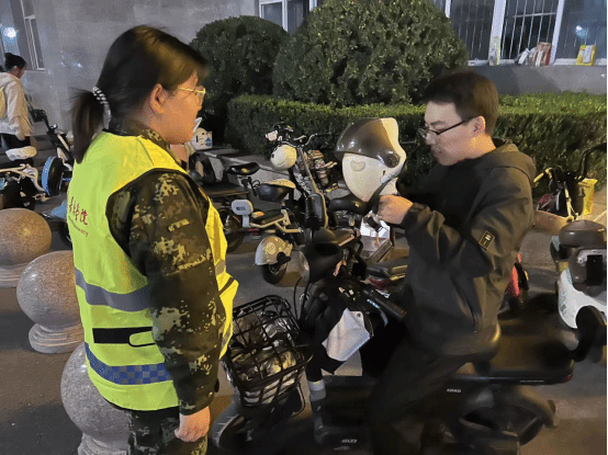 为保障师生出行安全,近期保卫部组织开展电动自行车佩戴安全头盔提醒活动。