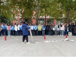 消防安全讲座中,保卫部老师首先组织学习习近平总书记关于消防安全的重要指示批示精神,结合师生学习、生活实际,从学校常见的火灾起因和预防、发生火灾如何应对、消防器材使用方法、实验室火灾预防措施四个方面进行讲解交流,讲座结束后,组织全体学生开展火灾逃生疏散演练。