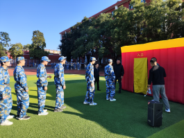 演练开始前,由保卫部老师向同学们讲解应急疏散演练逃生方式,在烟雾较大时,要弯腰屈膝,捂住口鼻,按照疏散指示标志指示的方向,头脑冷静、紧张有序地进行疏散。随后全体新生以十人为一组,分别进入消防逃生体验屋开展应急疏散演练。